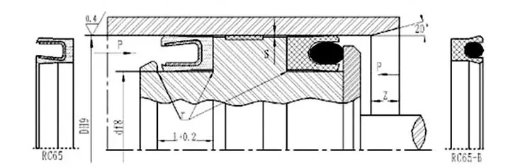 RC65-B-40-PTFE4+R02: बोर व्यास 40, सीलिंग रिंग सामग्री PTFE4 आहे, O-रिंग फ्लोरोरुबरपासून बनलेली आहे.
